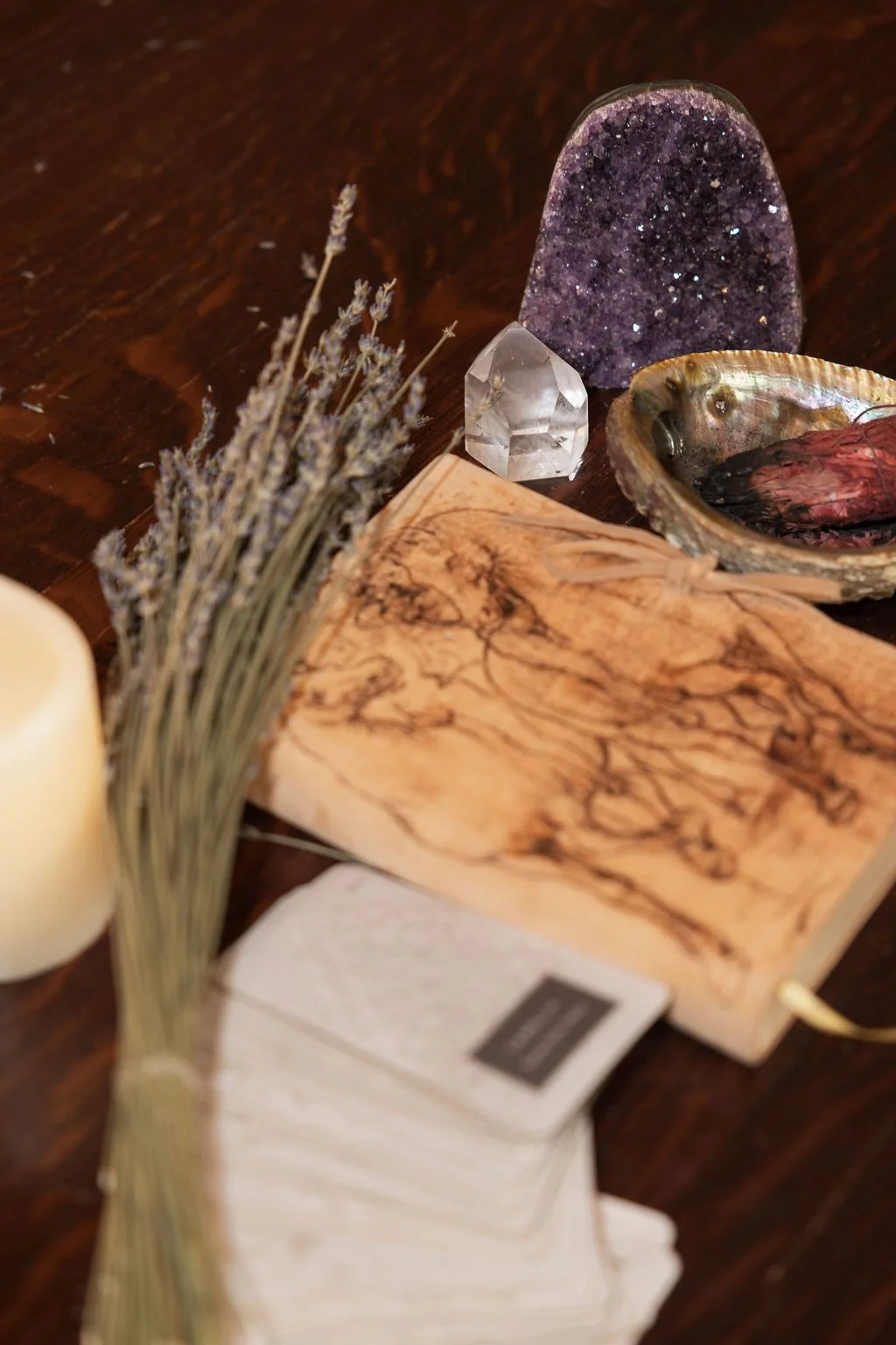 During this type of session I read, then draw the energy around you. Your energy can reveal limiting subconscious thoughts or areas in your life where you need some energetic integration or releasing.